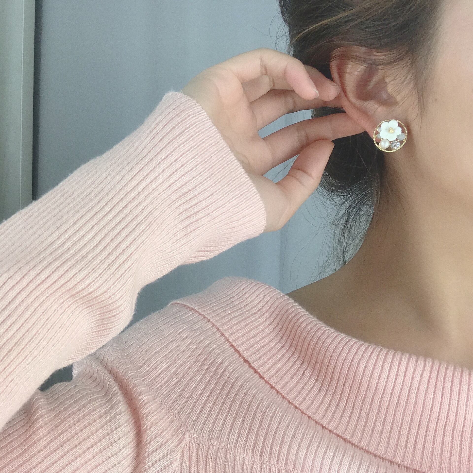 白いお花とパール、キュービックジルコニアを組み合わせた、まるでお花のブーケのような、可愛らしいレディースピアスです。