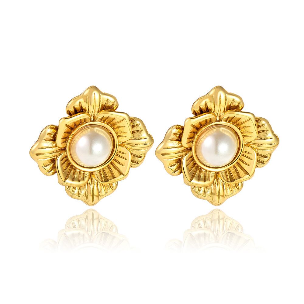 お色がアンティーク調フラワーモチーフと揺れる淡水パールが繊細な輝きを放つ、エレガントで洗練されたピアスです。