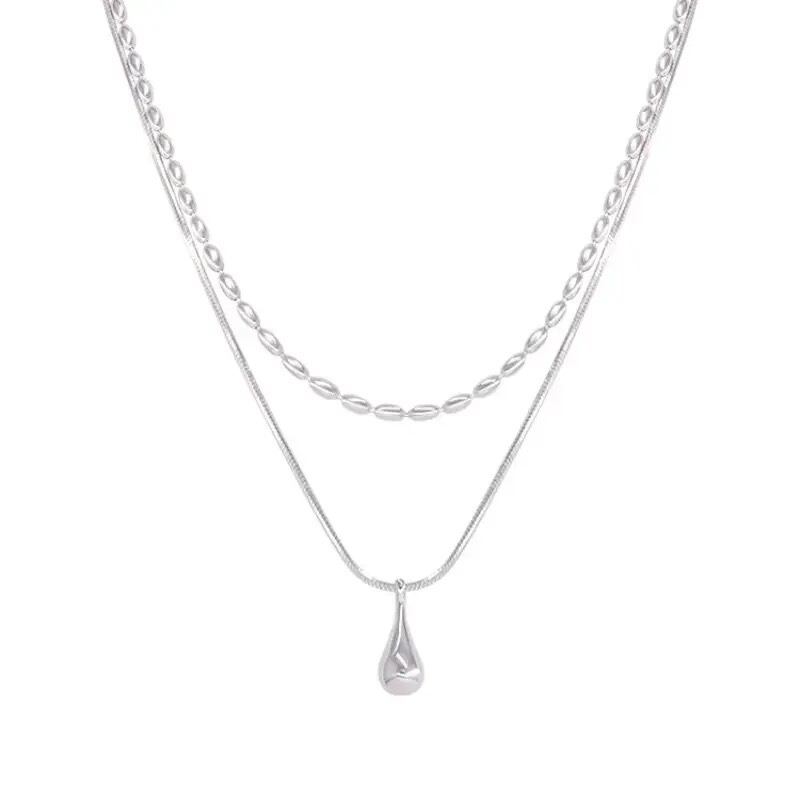 レディース シルバー 2連 チェーン しずくモチーフ ネックレス