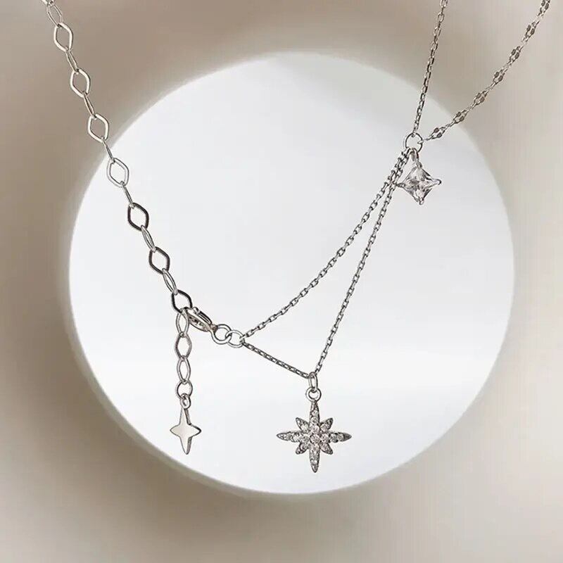 ドロップ スター 2連 ビジュー ネックレス レディース シルバー