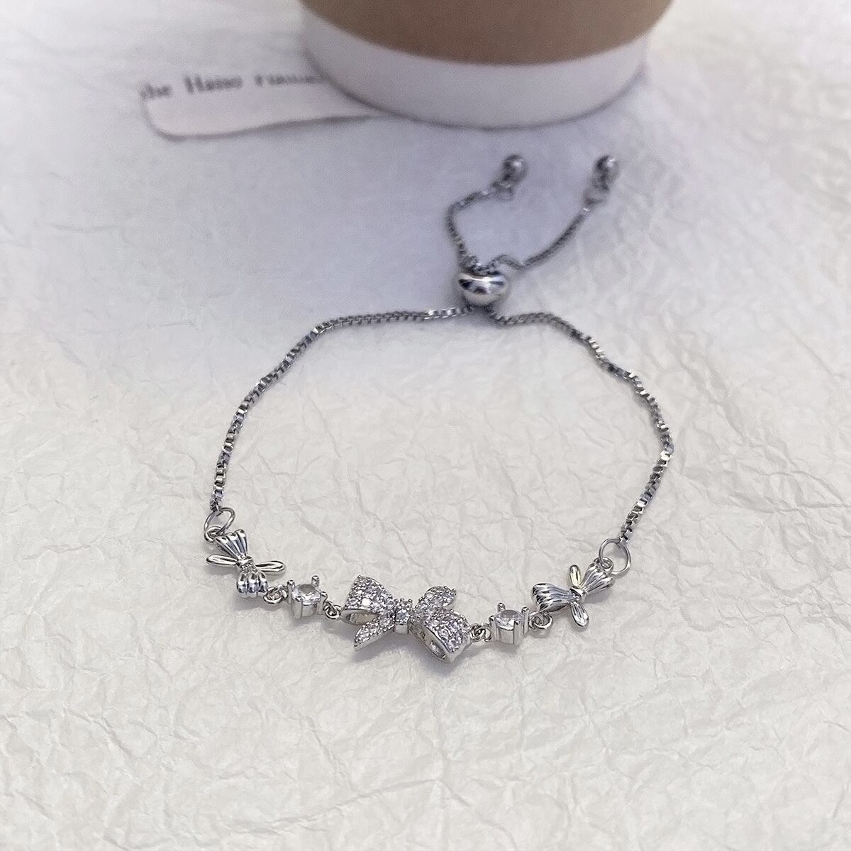 リボン ジルコンストーン チェーン レディース シルバー ブレスレット