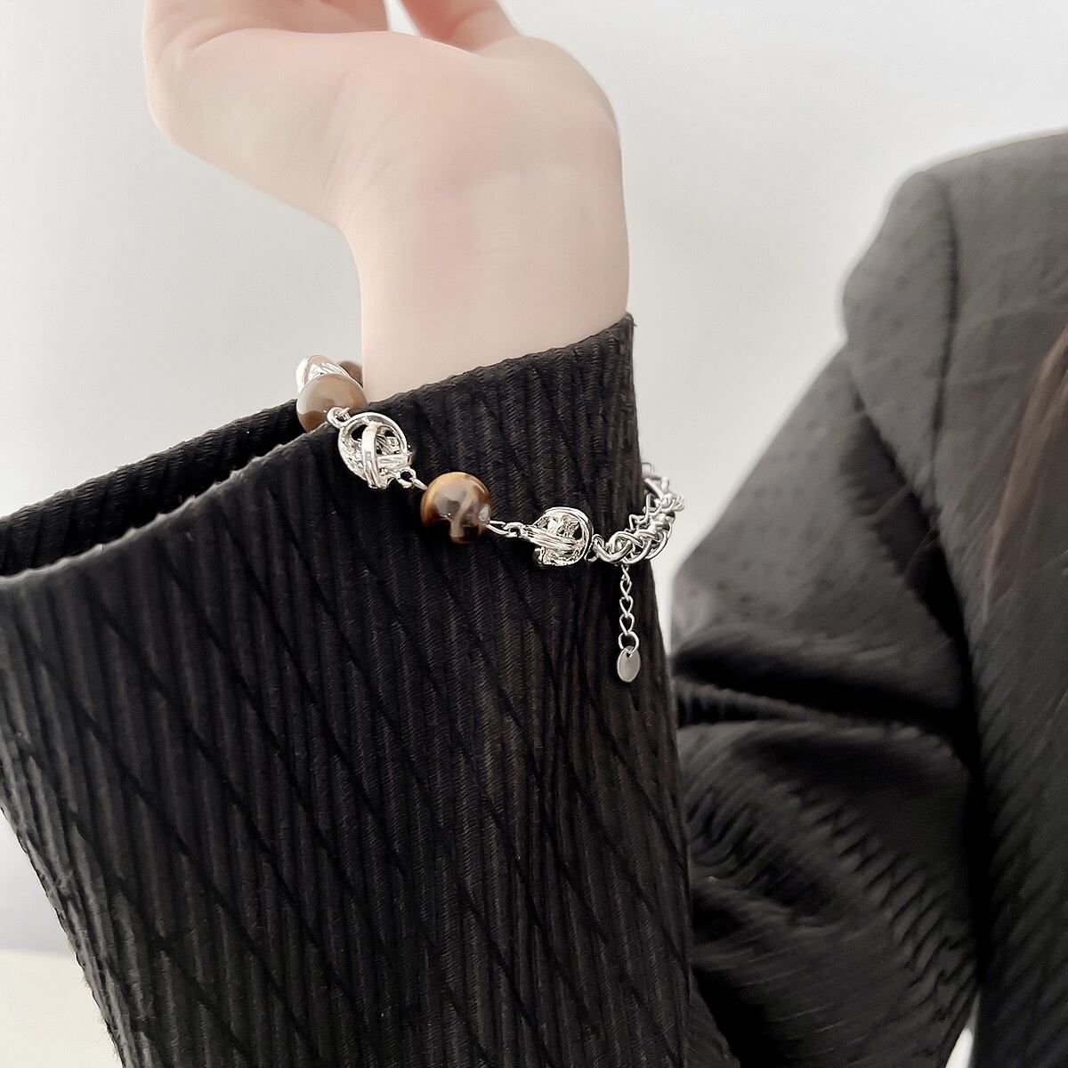 ブラウン ストーン チェーン レディース ブレスレット 調節可能