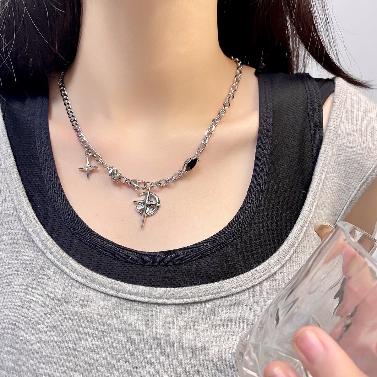 クロス ムーン 月 ブラック チェーン シルバー ストーン レディース ネックレス