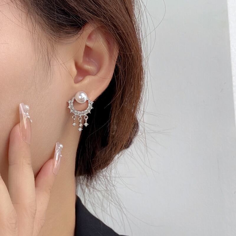 サークル ビジュー ラインストーン パール ピアス レディース シルバー イヤリング