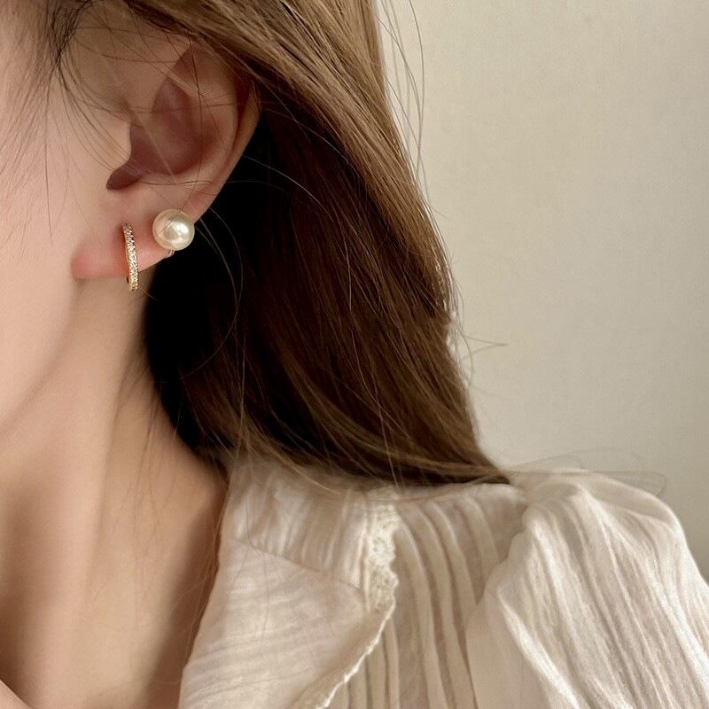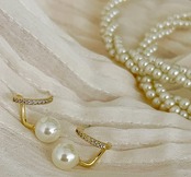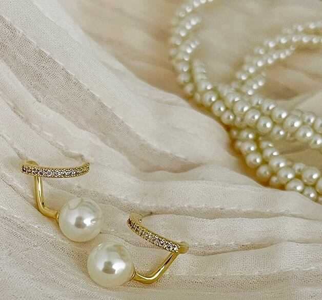 ホワイト パール ジルコンストーン ピアス レディース ゴールド イヤリング