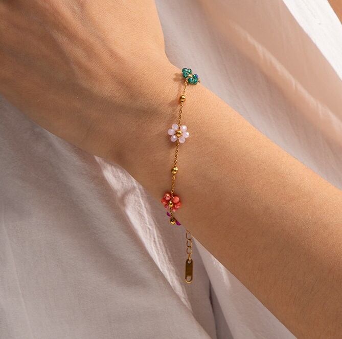 フラワー ビーズ ブレスレット レディース ゴールド チェーン アクセサリー