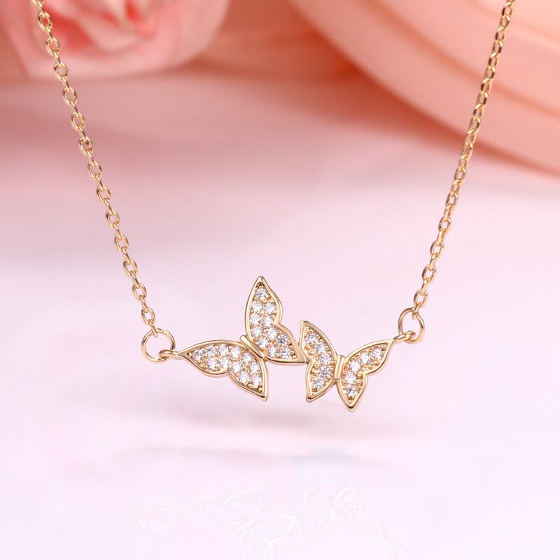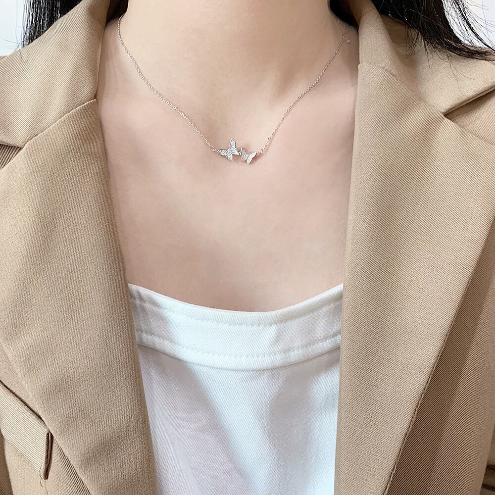 ラインストーン 蝶 バタフライ ネックレス レディース ゴールド シルバー チェーン