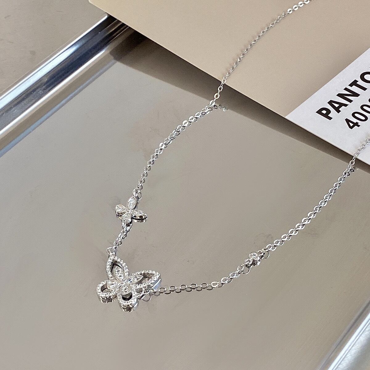 ダブル バタフライ 細み チェーン レディース ジルコニア ネックレス ショート チョーカー