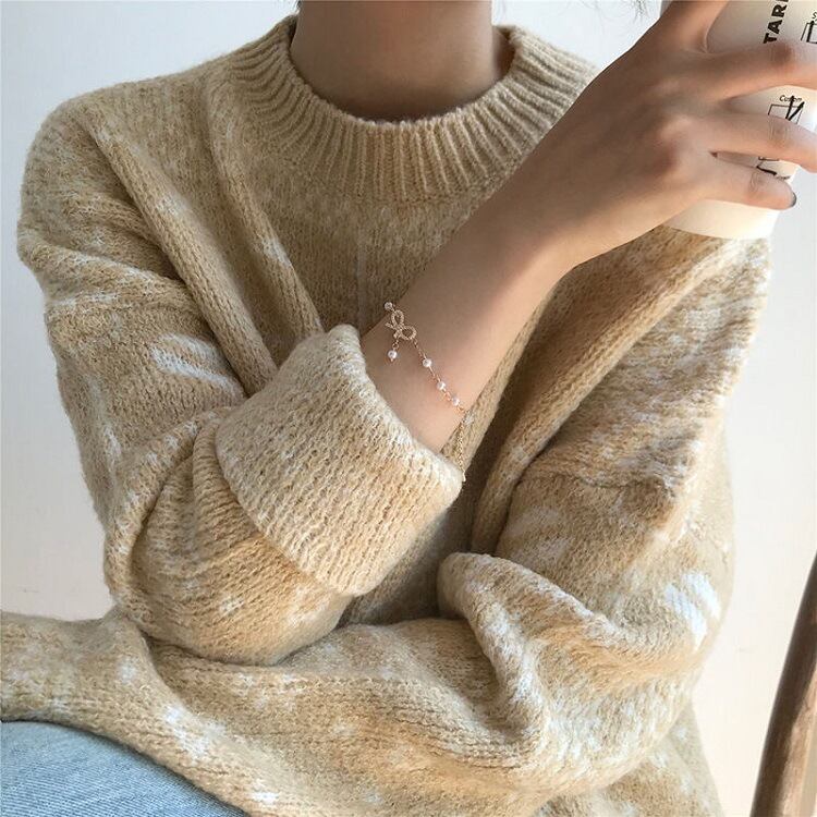 リボン パール ビーズ チャーム レディース ゴールド ブレスレット 調節可能