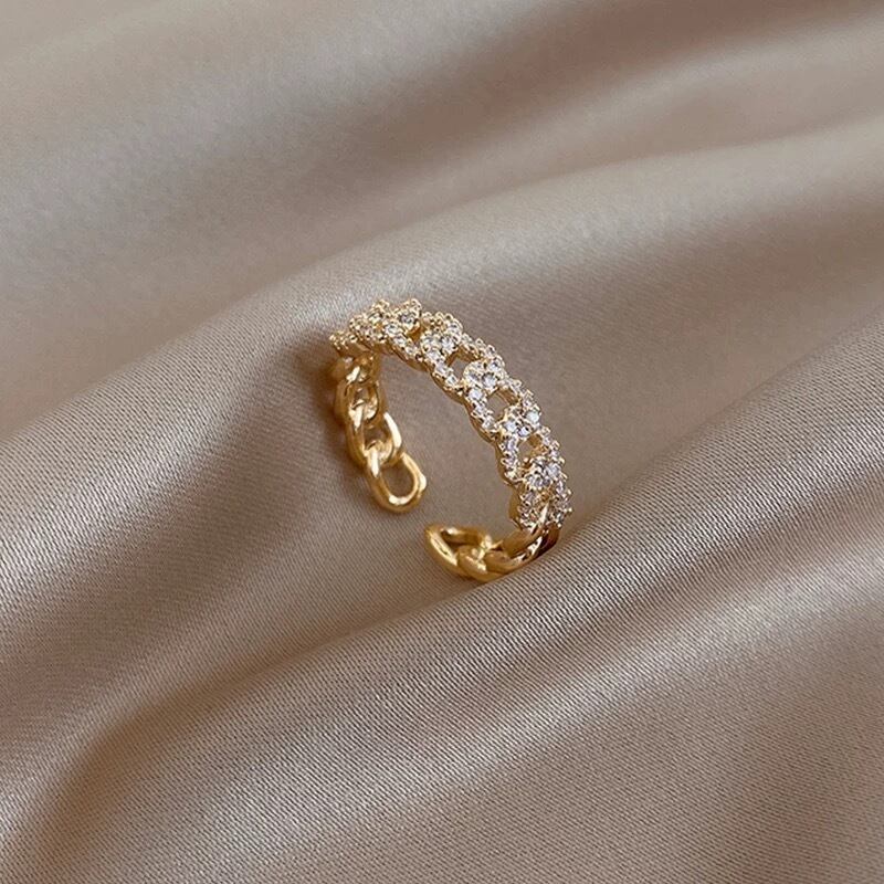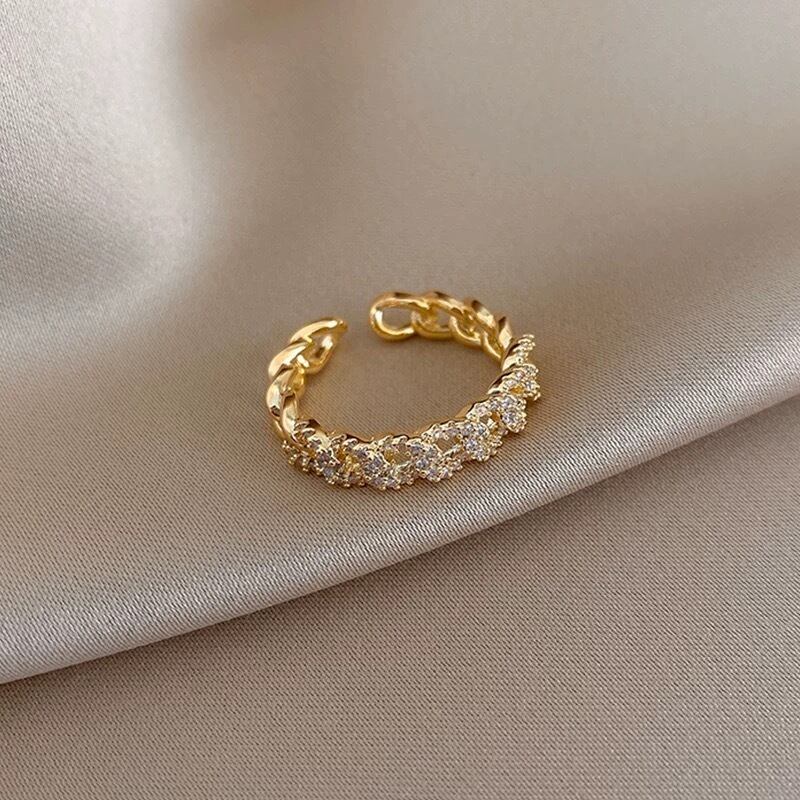 レディース チェーン ミニジルコニア リング ゴールド オープン 指輪