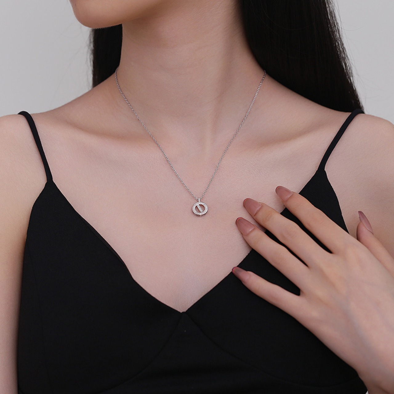 レディース ネックレス 2連 リング ジルコニア ペンダント チェーン 円型 チョーカー