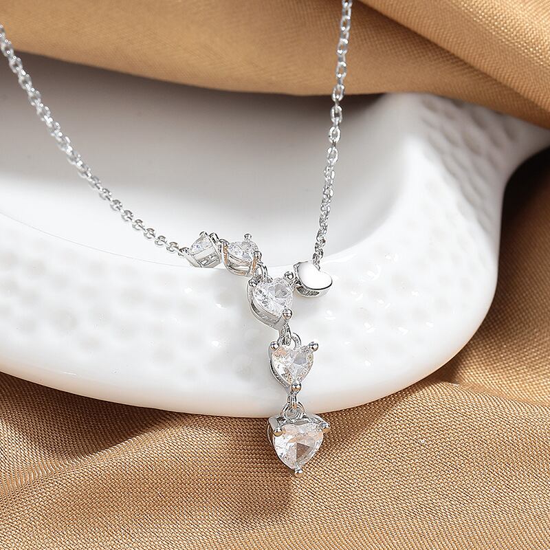 ハート ペンダント チェーン Y字型 ジルコニア ネックレス レディース シルバー ゴールド チョーカー