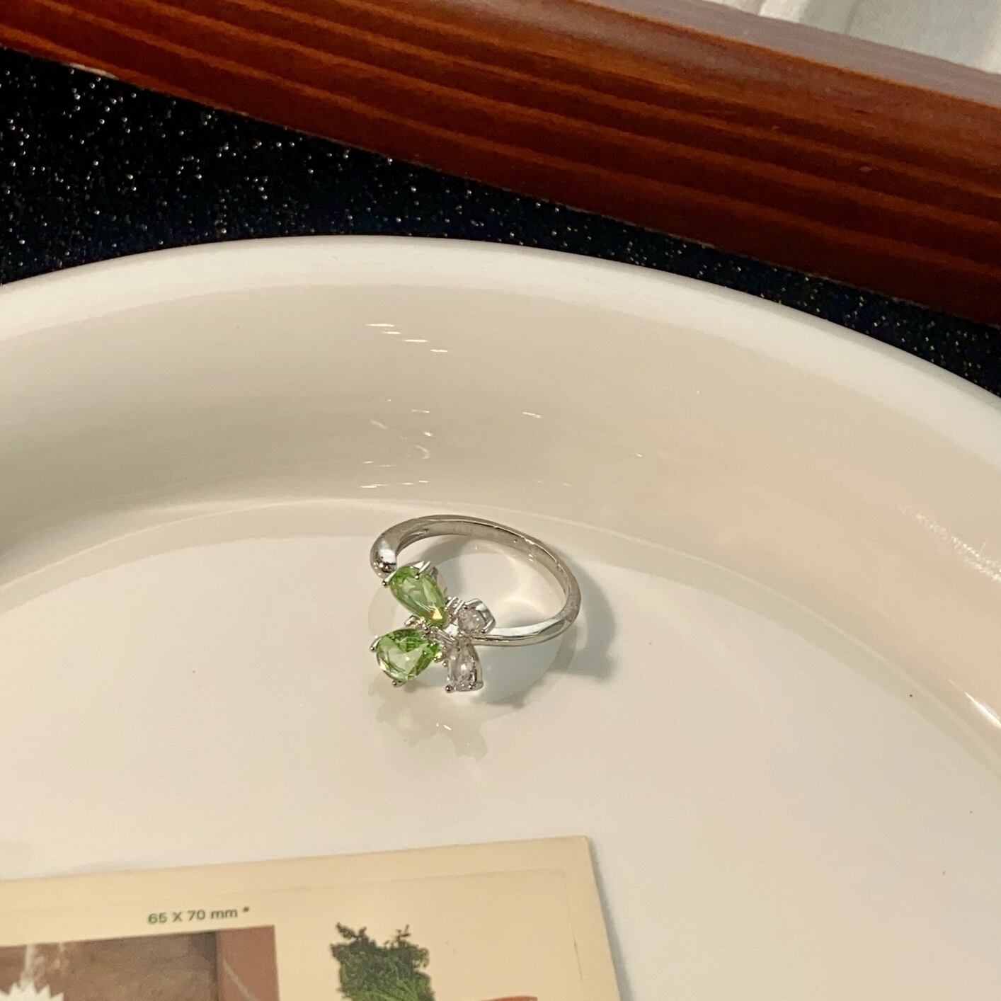 バタフライ ハート リング レディース シルバー グリーン ジルコン 指輪 2点セット
