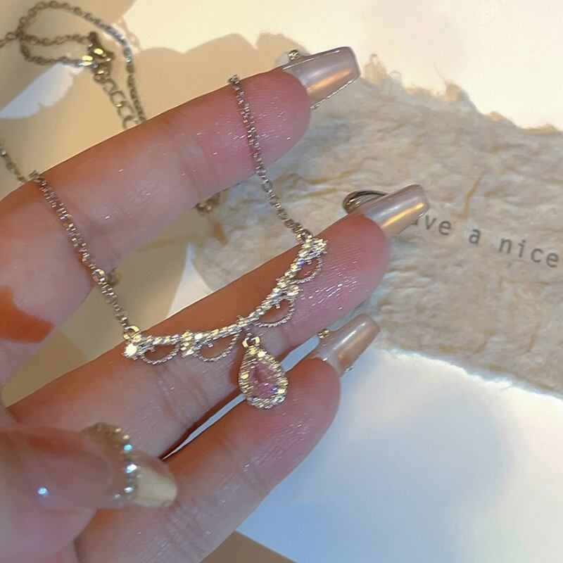 ピンク ジルコニア ネックレス S925 シルバー チョーカー レディース チェーン