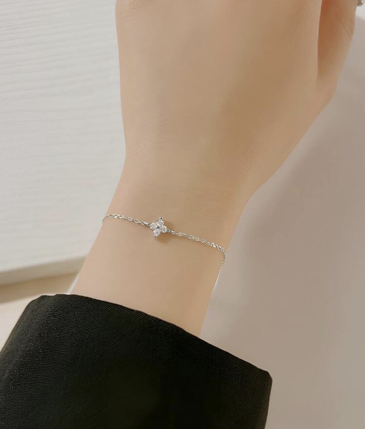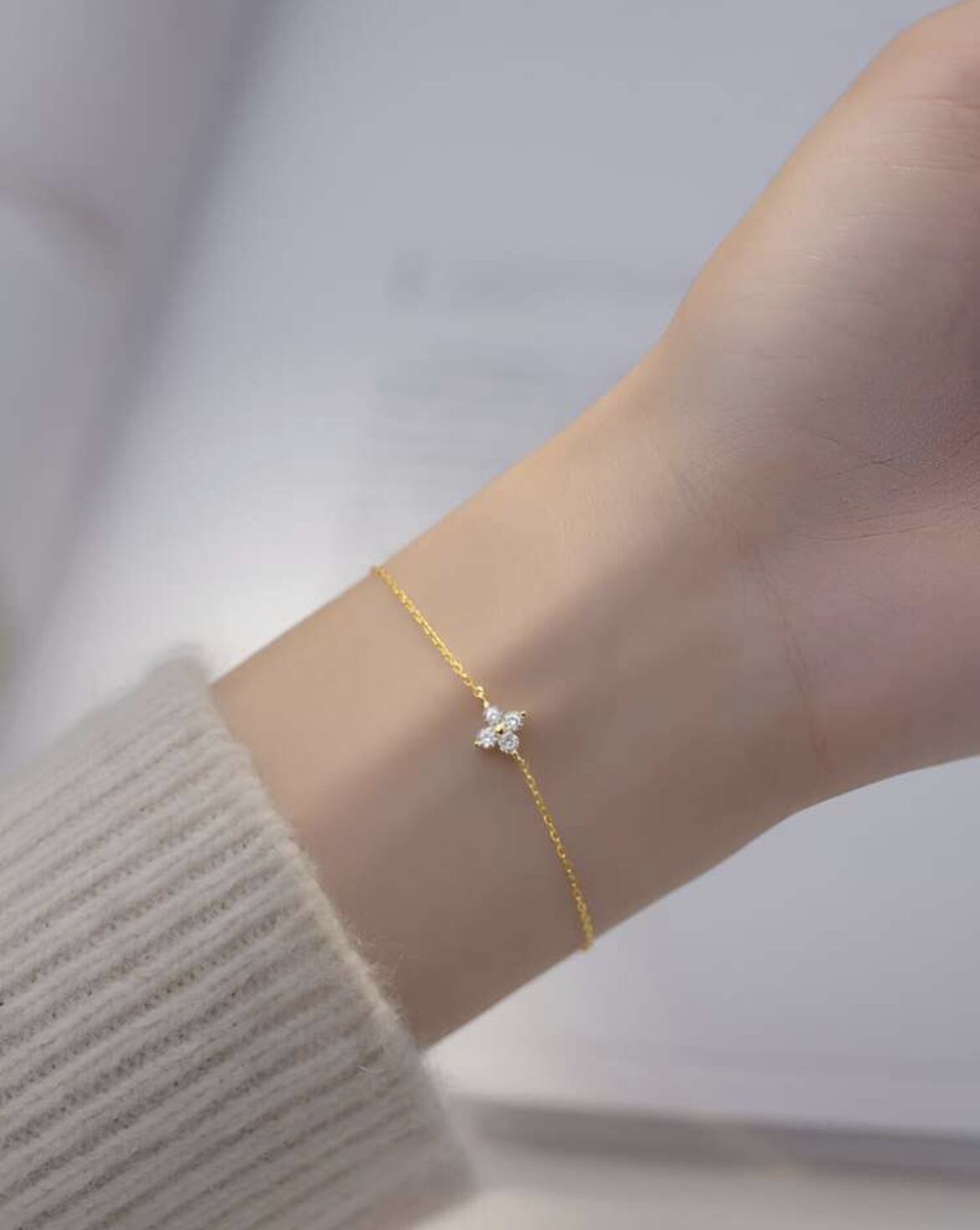 四つ葉のクローバー ブレスレット レディースシルバーゴールド S925 チェーン ビジュー