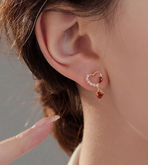 レッド ジルコン ハート ピアス レディース ゴールド イヤリング ジュエリー