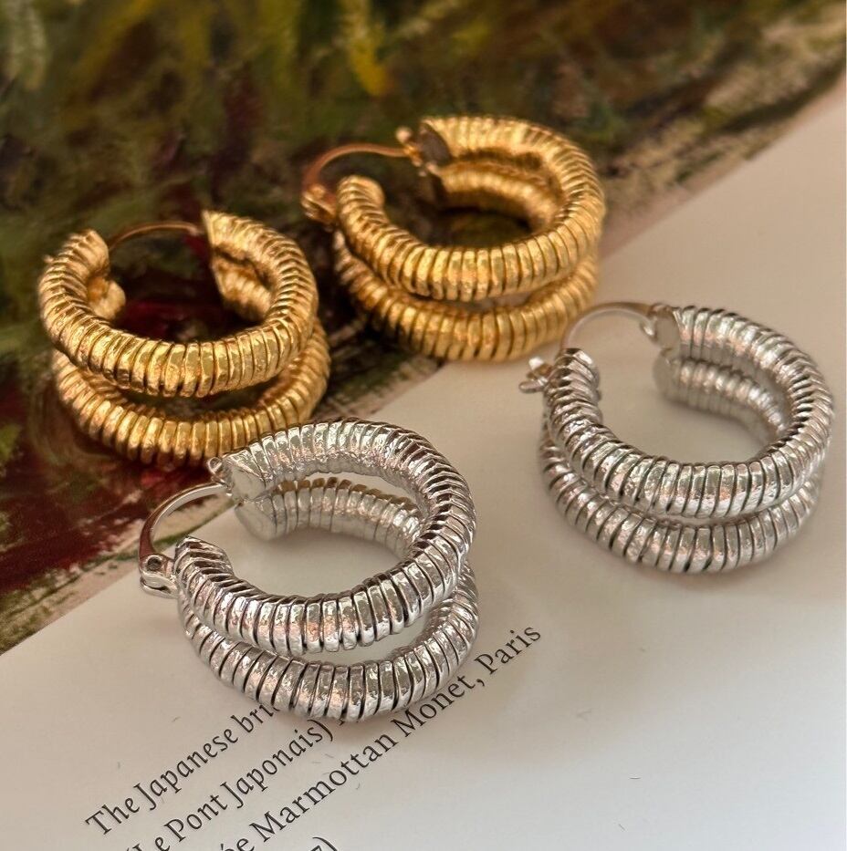 スプリング式のダブルラインが存在感を放つイヤーカフ。