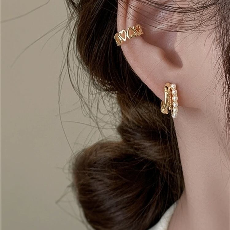 ダブル ウェーブ C型 パール イヤリング レディース ゴールド ピアス