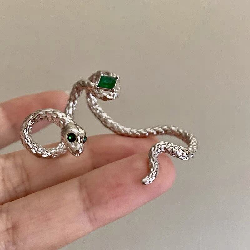 グリーン ストーン スネーク イヤーカフ 片耳用 レディース シルバー 耳飾り