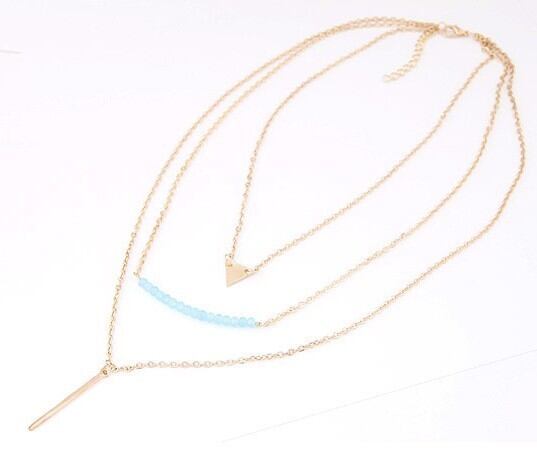 3連 ロング ネックレス レディース ペンダント チェーン シルバー チョーカー