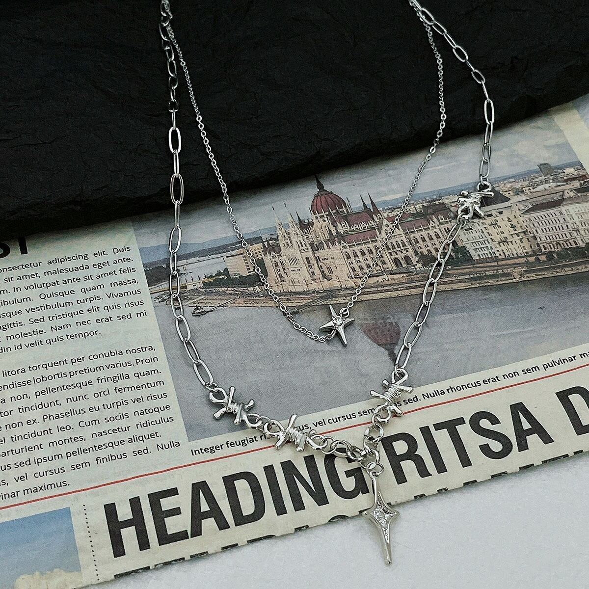 十字架 ネックレス 2連 ストーン シルバー チョーカー レディース チェーン