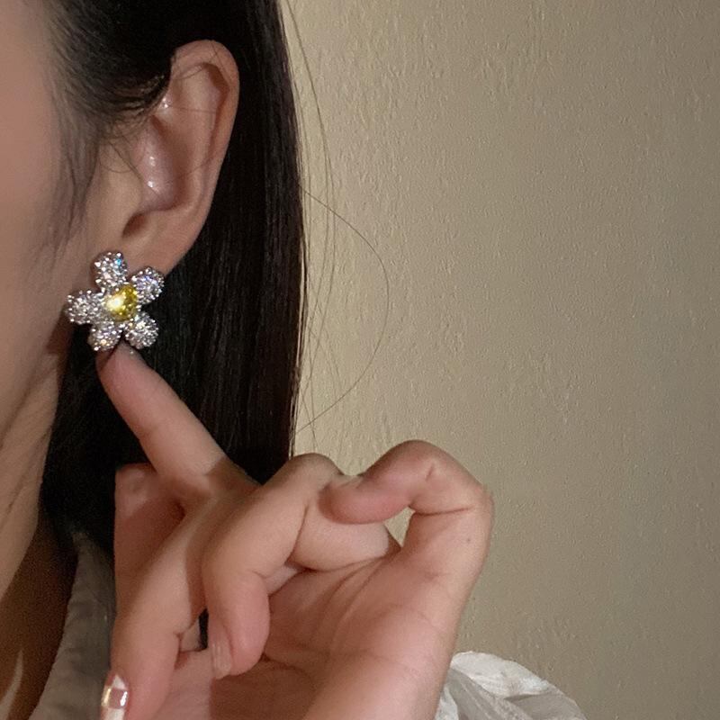 ひまわり フラワー イヤリング レディース 925 シルバー ジルコン ピアス