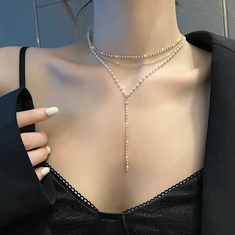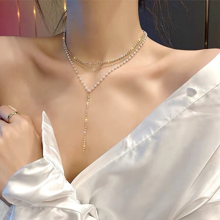 3連 ネックレス レディース シルバー チョーカー ロング タッセル チェーン アクセサリー