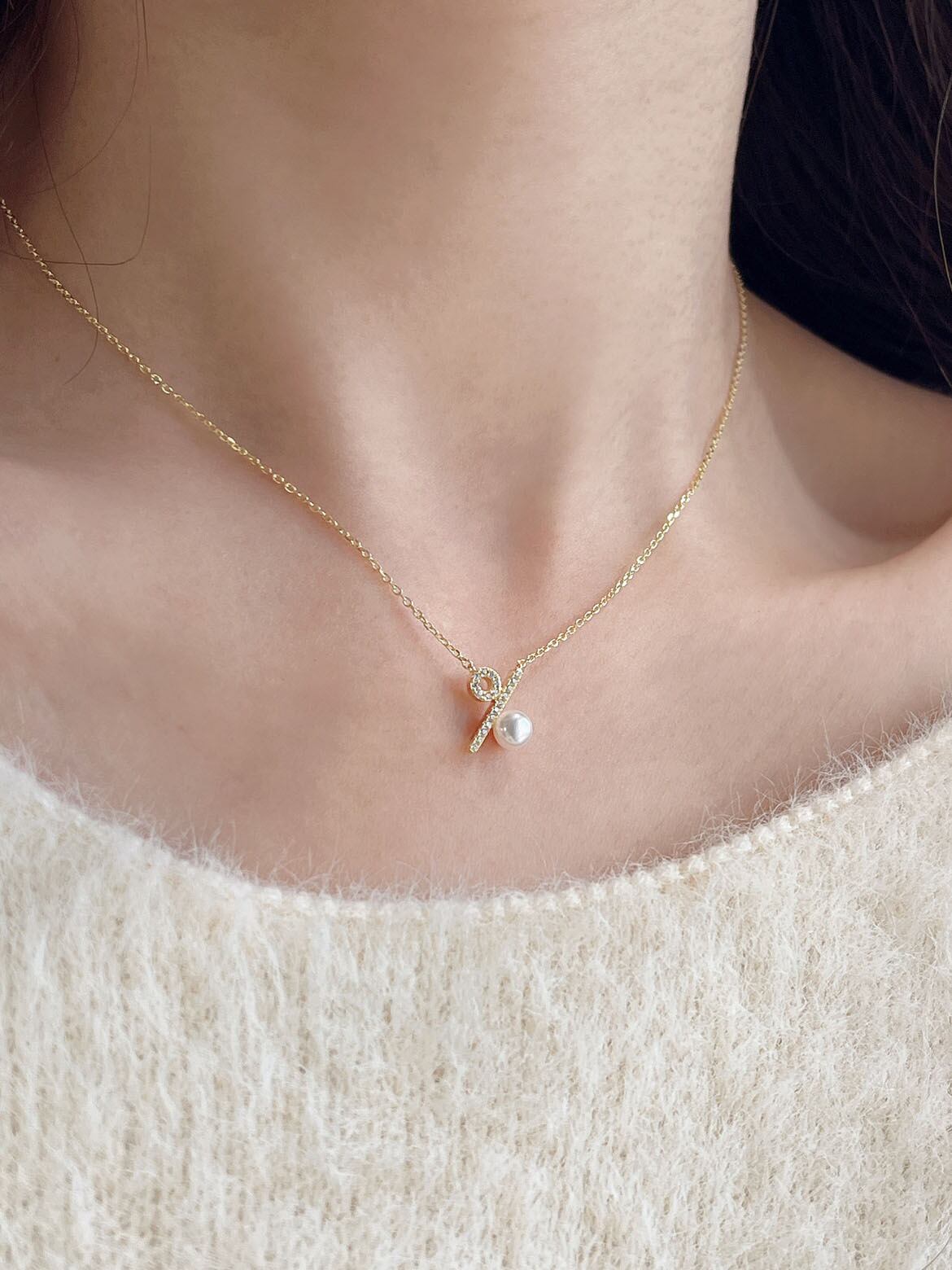 パール ジルコン ペンダント ネックレス レディース 真珠 シルバー ゴールド チョーカー ショート チェーン