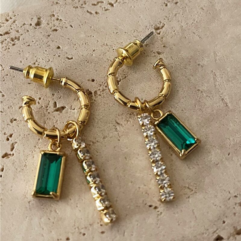 スクエア スティック ストーン フープ ピアス レディース シルバー ゴールド イヤリング