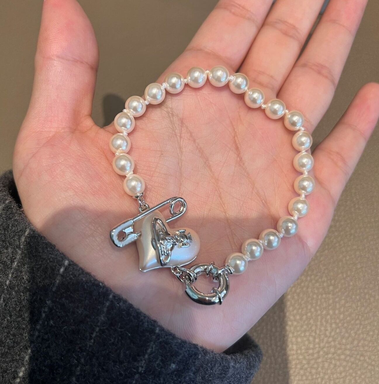 レディース パール ブレスレット 土星 ハート ペンダント チェーン 腕輪 アクセサリー