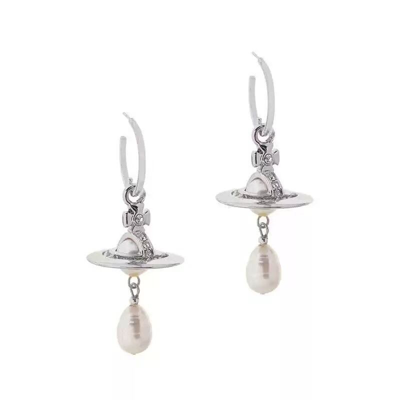 シルバー サターン イヤリング レディース パール ペンダント ピアス