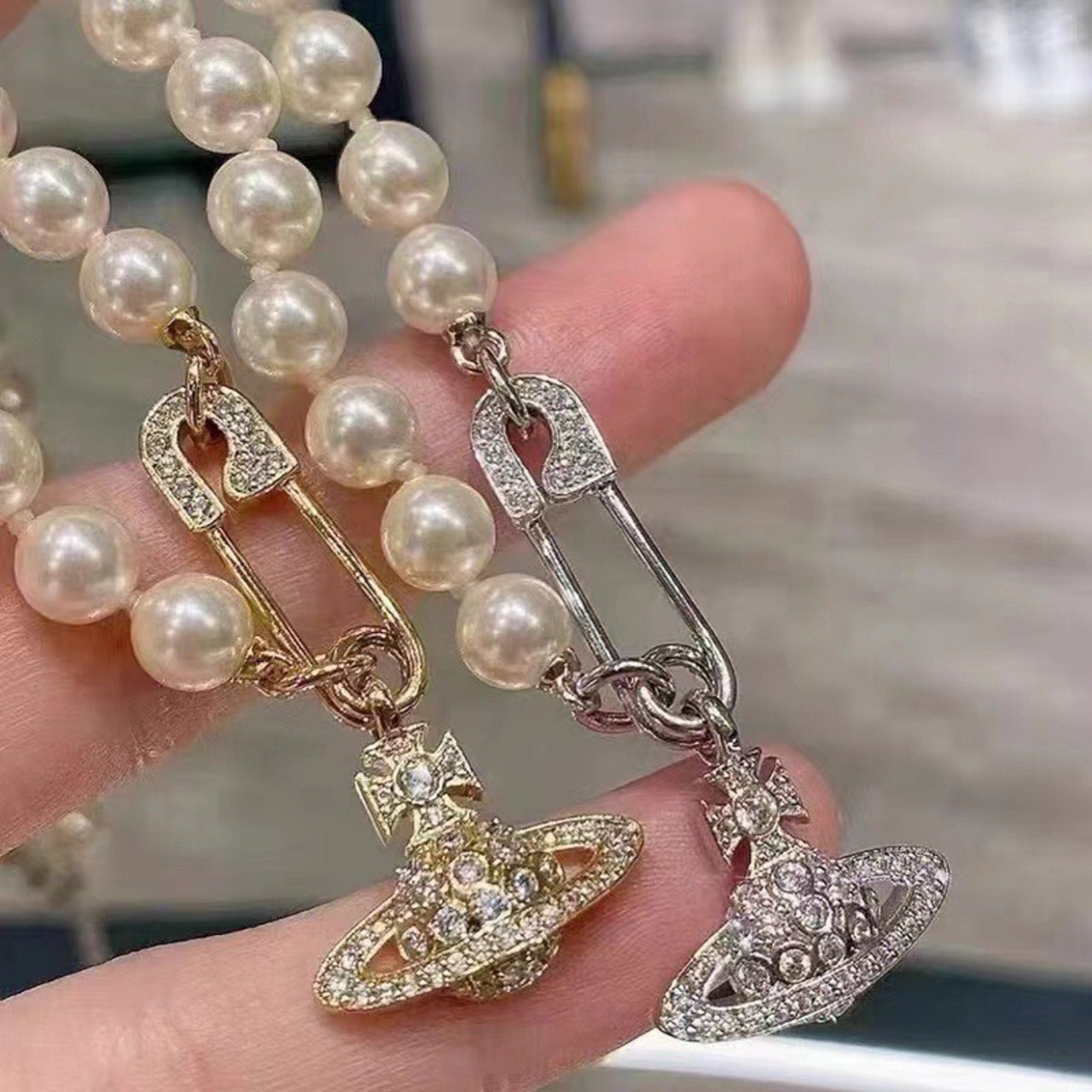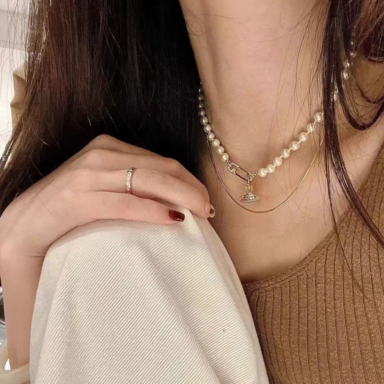 土星 オーブ チェーン レディース ジルコニア パール ネックレス シルバー ゴールド チョーカー