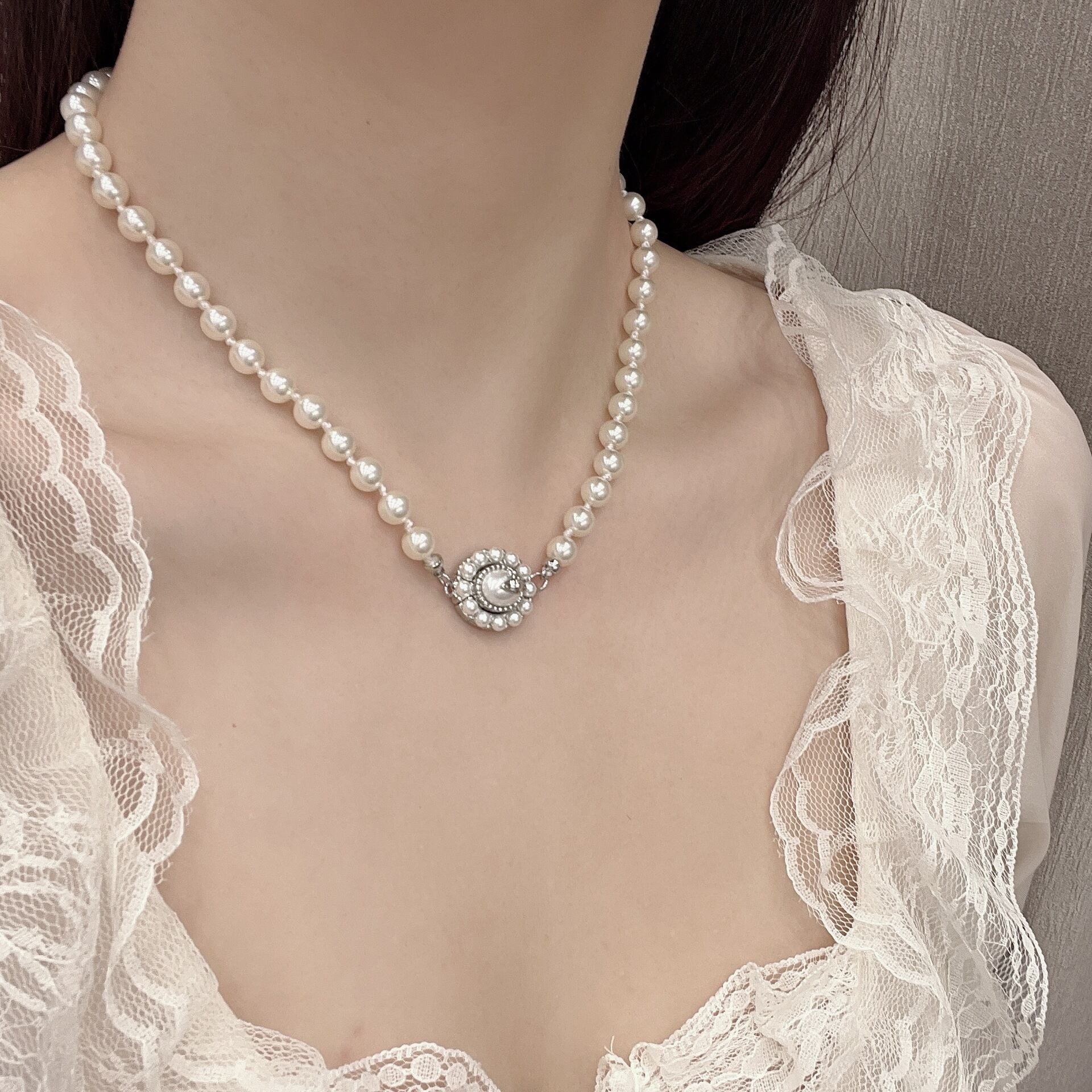 パール ネックレス レディース シルバー ゴールド チョーカー 真珠 ショート チェーン