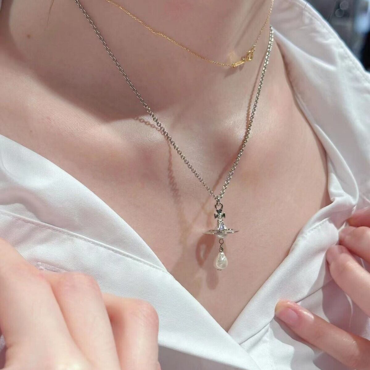 パール サターン ネックレス レディース シルバー ショート チェーン ペンダント チョーカー
