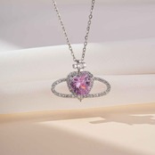 ハート サターン ネックレス レディース ジルコン ペンダント チョーカー シルバー ゴールド チェーン