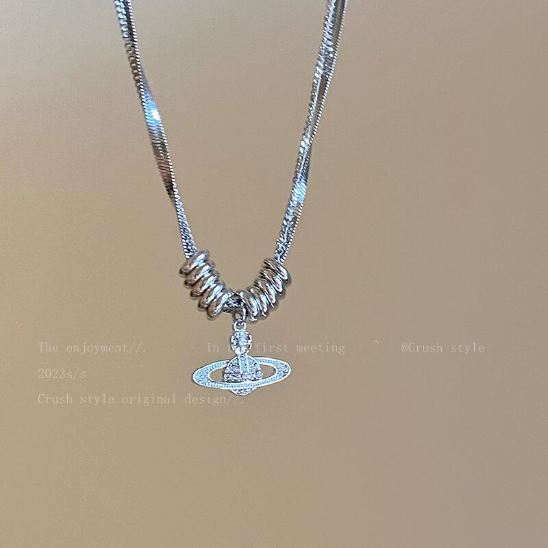 レディース サターン ペンダント ネックレス シルバー チェーン