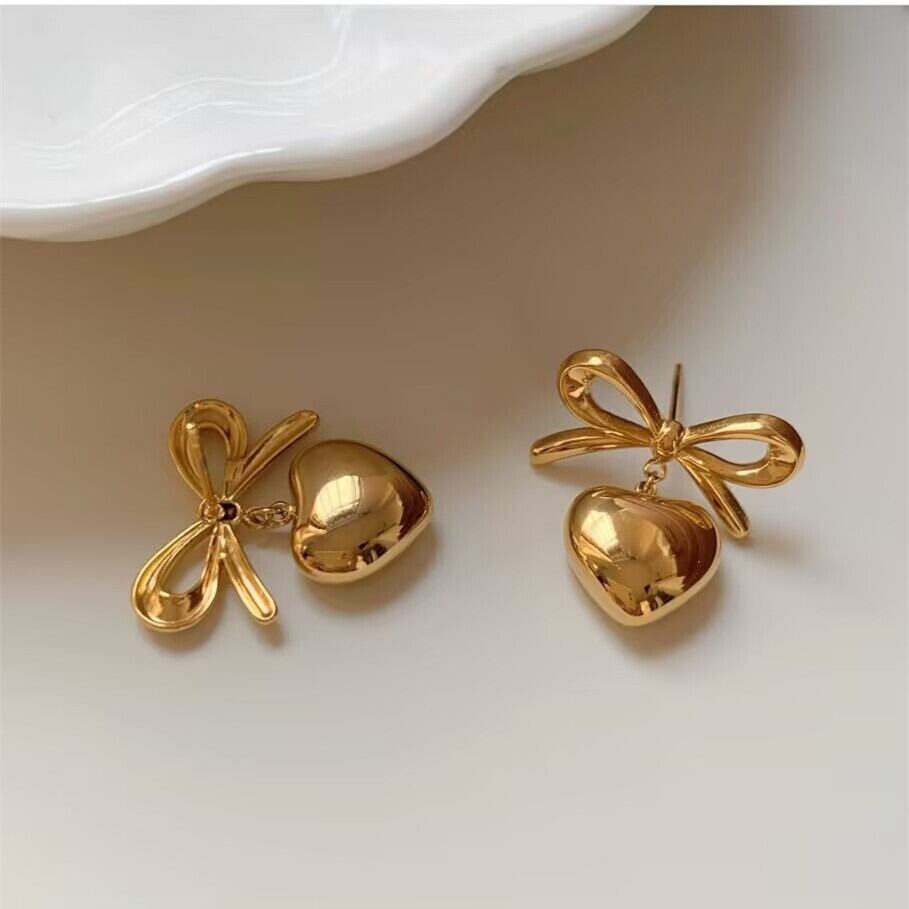 ハート リボン イヤリング レディース 18K ゴールド ピアス