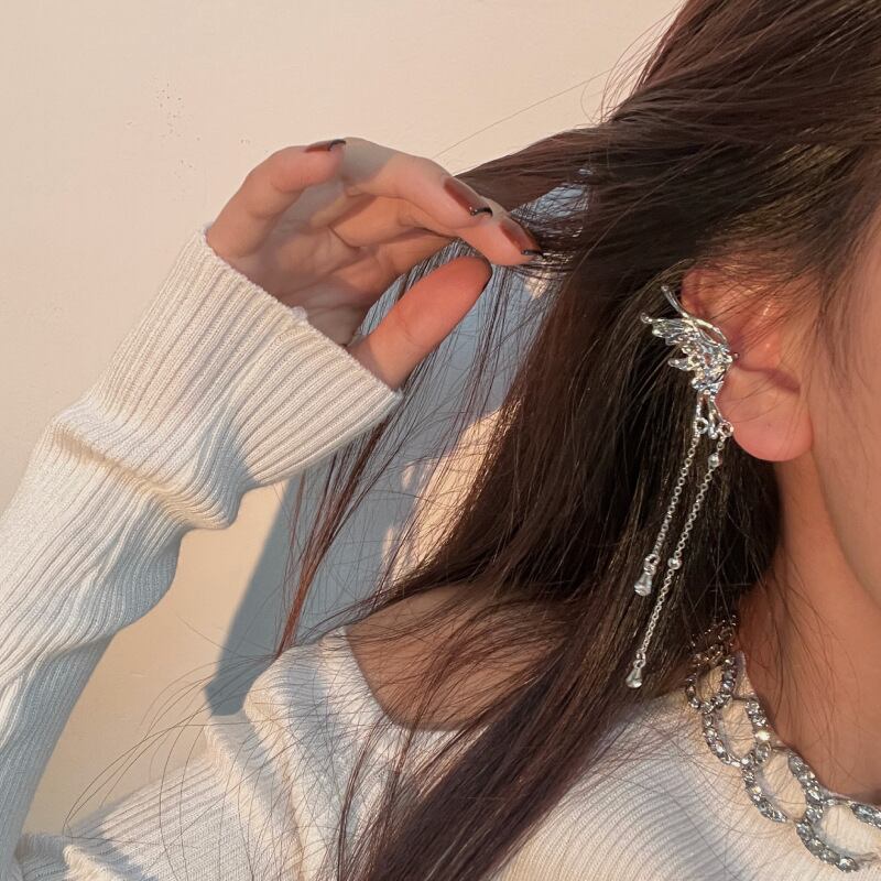 バタフライ タッセル イヤーカフ レディース シルバー ピアス