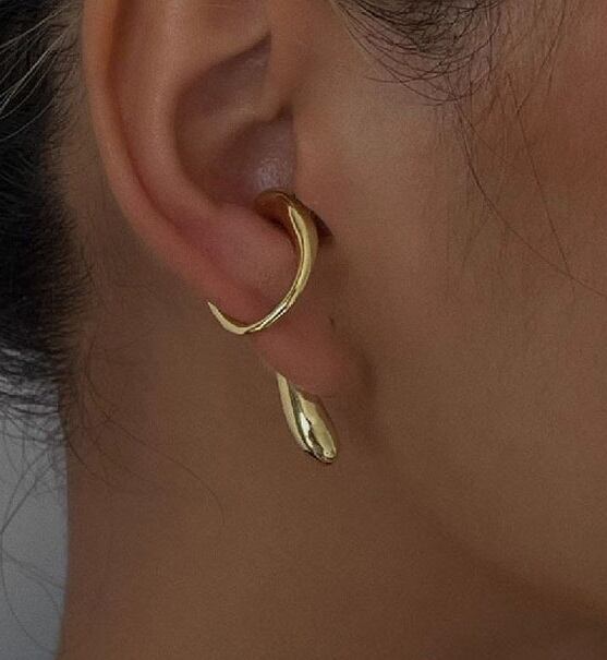 ティアドロップ イヤーマフ ゴールド シルバー ピアス 男女兼用