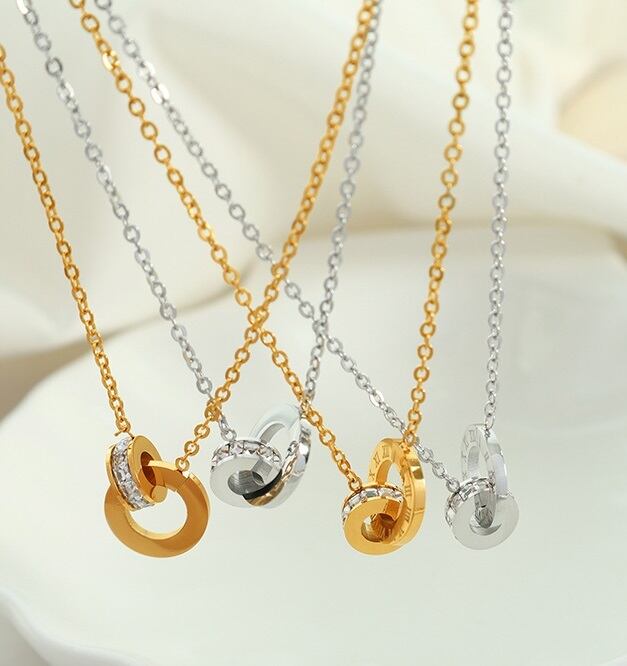 ラウンドリング ネックレス レディース 18K チョーカー ジルコニア チェーン