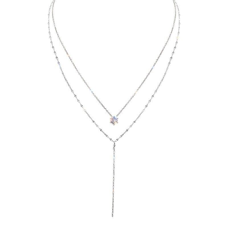 レディース ロング タッセル ネックレス シルバー ジルコニア チェーン