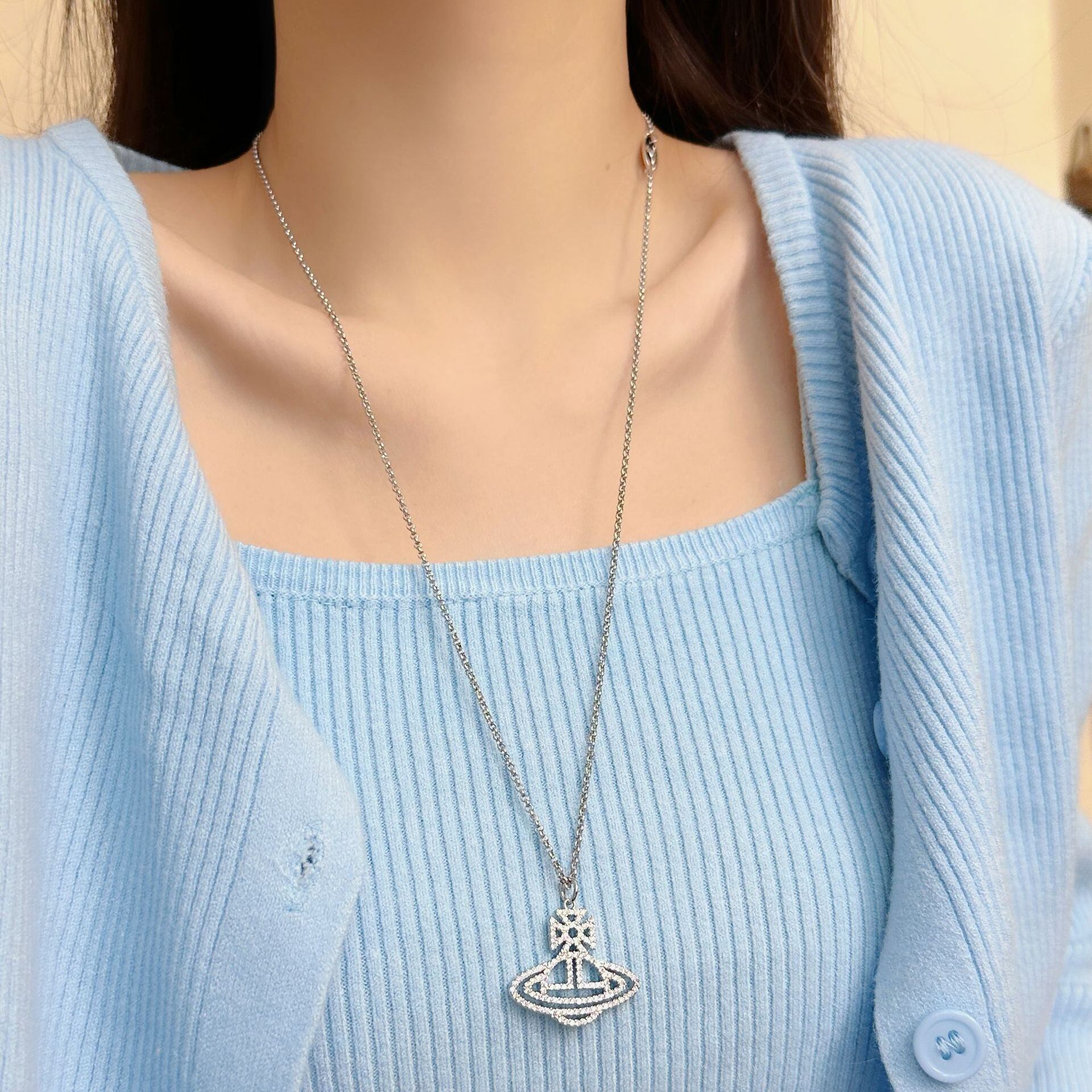 サターン ペンダント ネックレス レディース ロング シルバー チェーン
