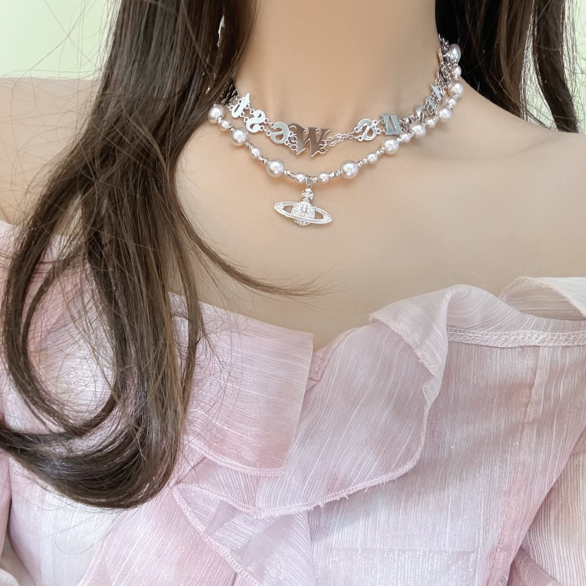 モノグラム パール ネックレス レディース 真珠 サターン チョーカー 2点セット