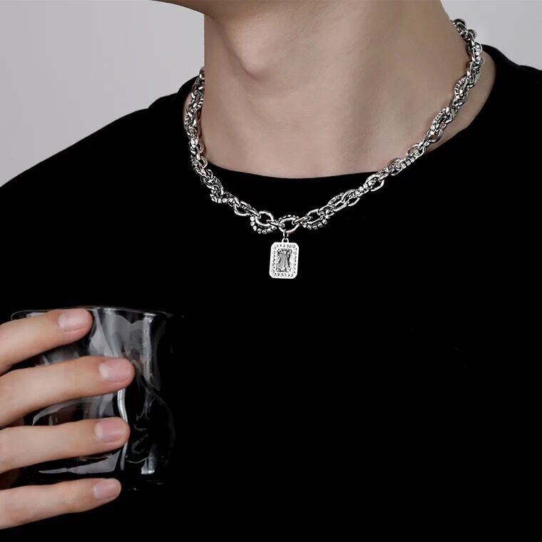 スクエア ストーン ネックレス メンズ ジルコン シルバー チェーン
