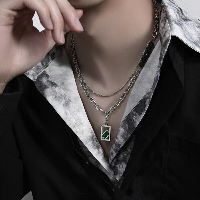 グリーン ストーン ネックレス メンズ シルバー ペンダント チェーン