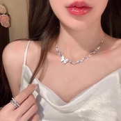 シルバー 蝶 シェル 鎖骨チェーン レディース 銀色 ラインストーン ネックレス