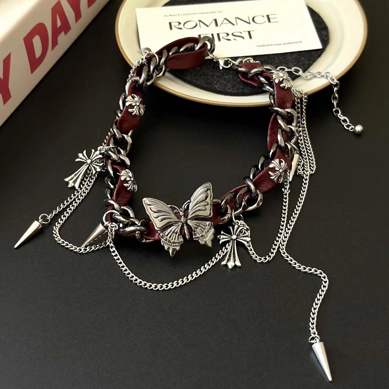 パンク バタフライ チョーカー レディース メタル チェーン 蝶 ネックレス
