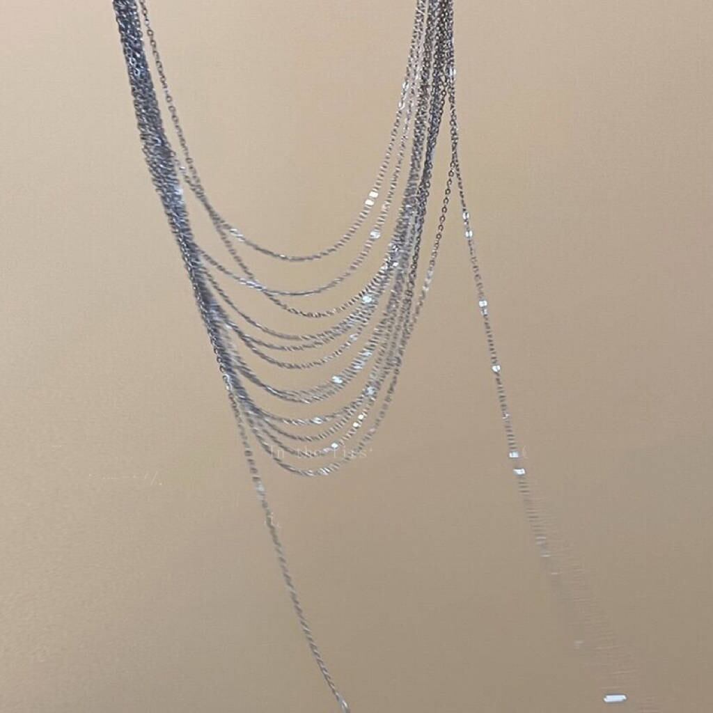 シルバー フリンジ チョーカー レディース 多連 レイヤード ネックレス