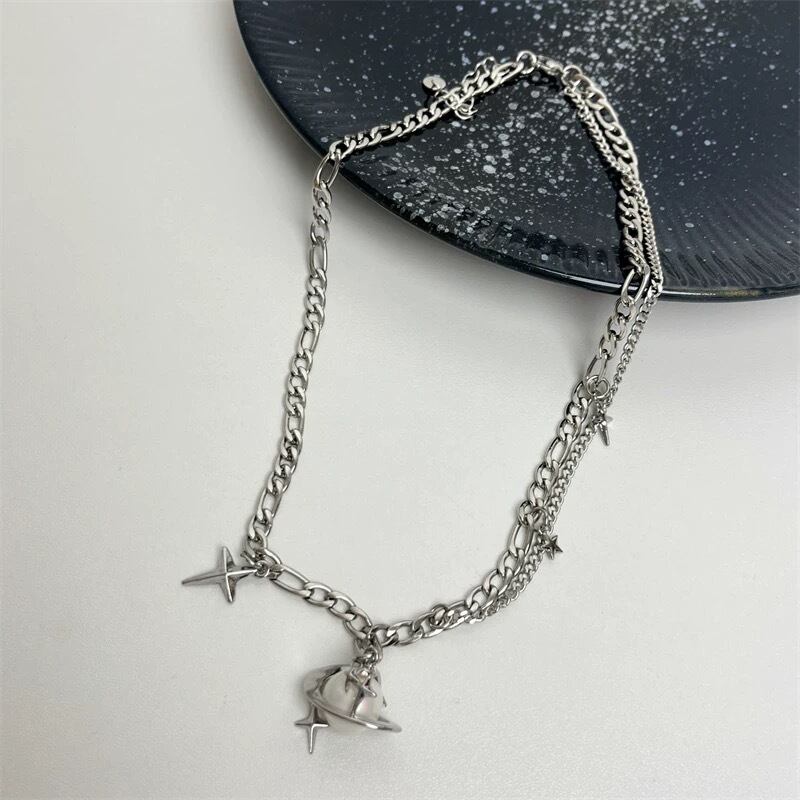 シルバー 土星 ネックレス レディース シンプル アクセサリー