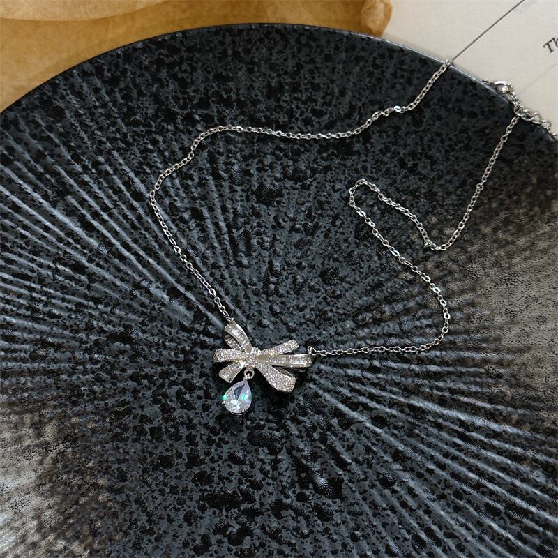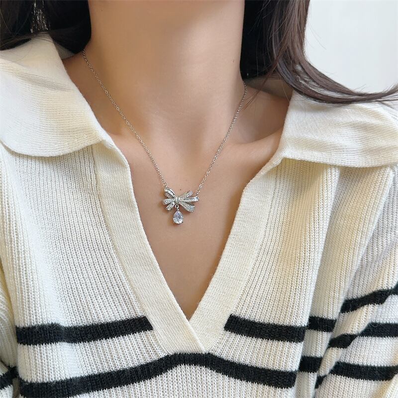 バタフライ ドロップ ネックレス レディース シルバー ジルコニア チョーカー